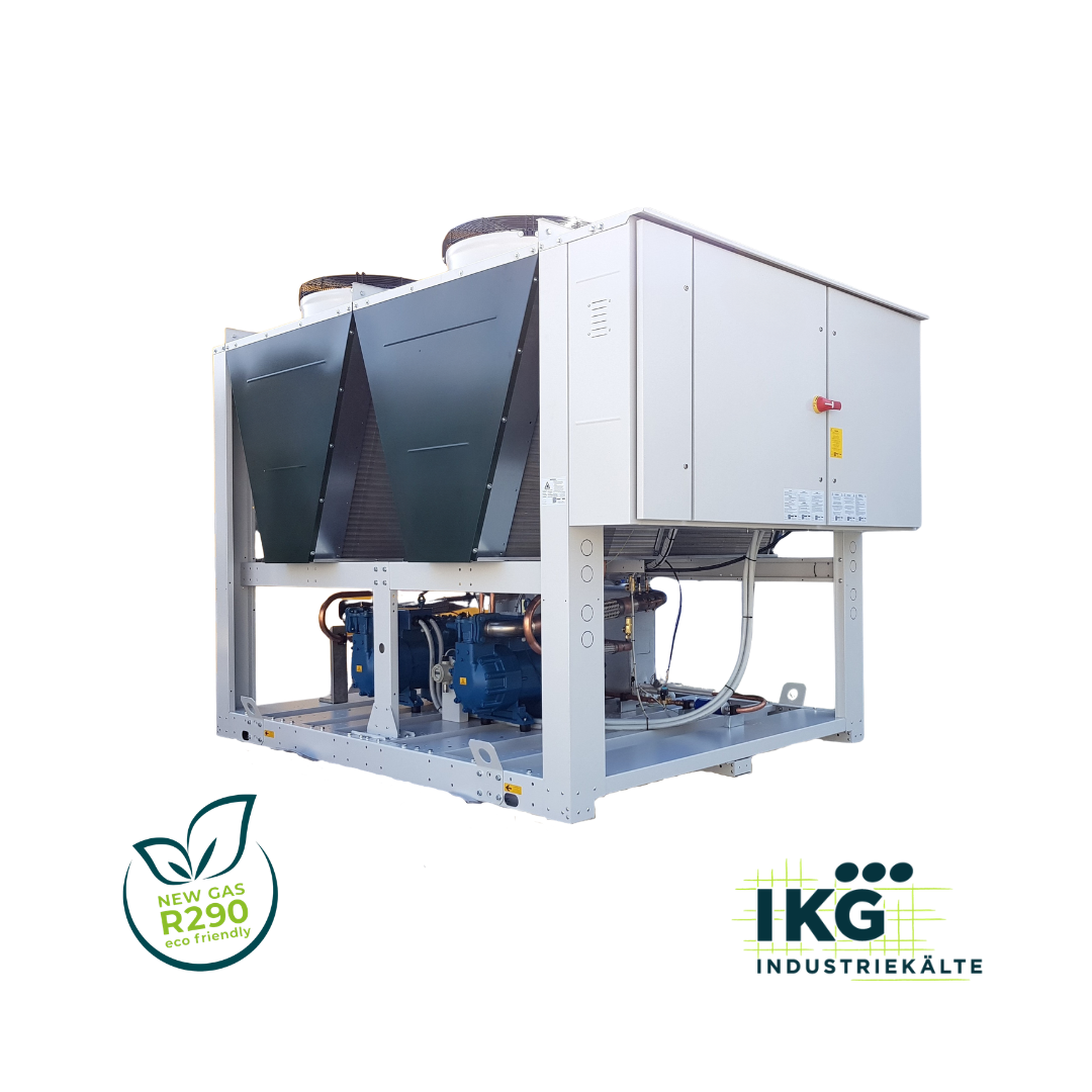 Die IKG-APC Serie bietet kompakte, luftgekühlte Flüssigkeitskältemaschinen im Leistungsbereich von 8 kW bis 55 kW. Sie nutzt das natürliche Kältemittel Propan (R290), welches mit einem GWP-Wert von nur 3 als zukunftssicher gilt. Ausgestattet mit effizienten Kolbenkompressoren und Plattenwärmetauschern, bietet die Serie einen hohen Wirkungsgrad. Optional sind diese Anlagen sogar mit Edelstahlrahmen und beschichteten Verflüssigern für stark korrosive Umgebungen erhältlich.